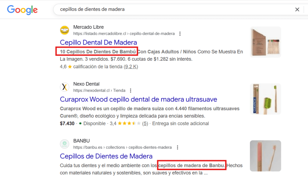 El momento de la revelación llegaría al poner en el buscador de Google «cepillos de dientes de madera» (como en la imagen que se muestra abajo), con el fin de saber principalmente dónde podía encontrar este producto (nunca lo había visto en supermercados o farmacias) y cuánto valía.