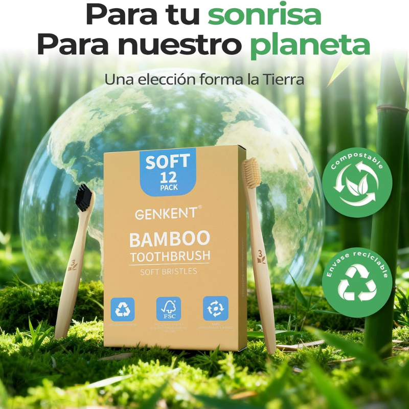 GENKENT no es solo un cepillo de dientes; es un paso fácil y efectivo hacia un estilo de vida más consciente, natural y biodegradable. ¡Únete a la revolución del bambú!